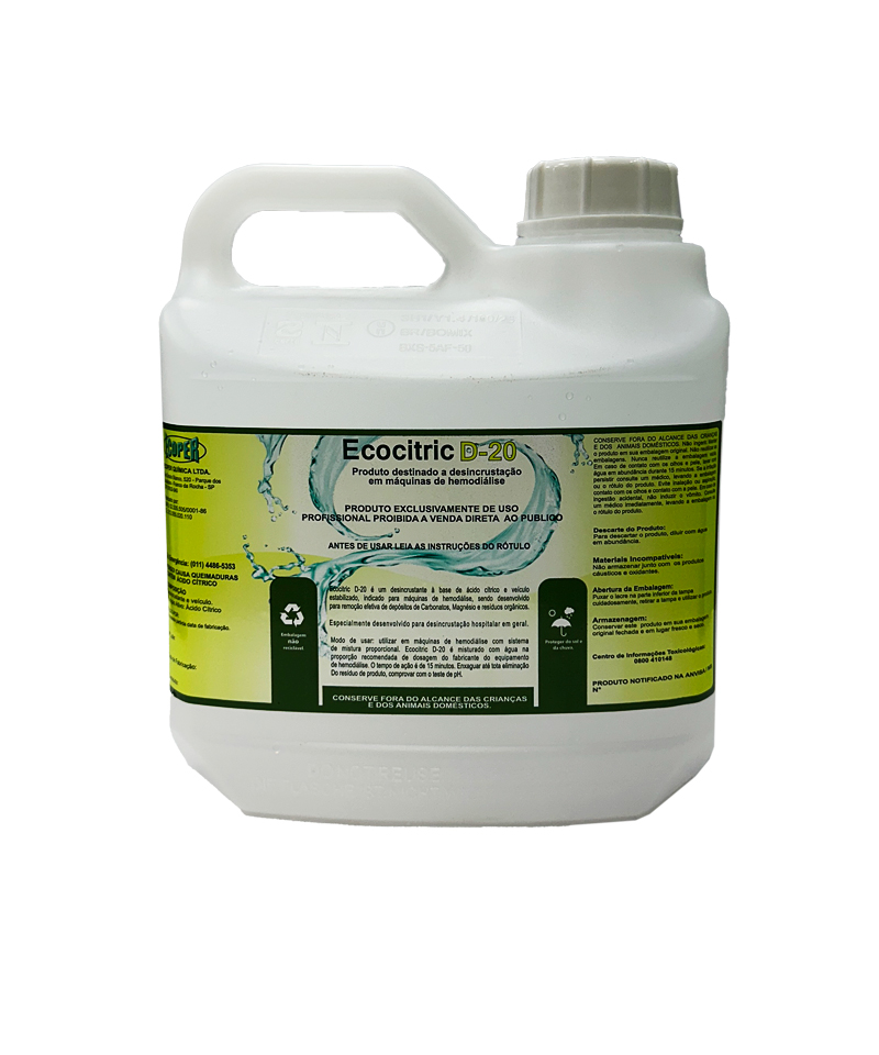 - Diluição: Deve ser utilizado puro ou conforme proporção recomendada de dosagem do fabricante do equipamento, na desincrustação de máquinas de hemodiálise.